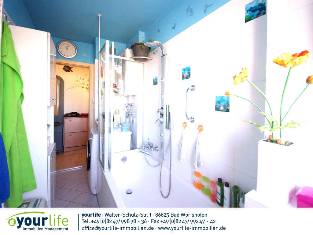 Zentral gelegene drei Zimmer Wohnung in Kaufbeuren. Die Wohnung wurde im Jahr 2007 renoviert, hier wurde das Bad komplett neu gefliest und neue Böden verlegt. Am Haus wurde ebenfalls eine Modernisierung im Jahr 2007 durchgeführt, hier wurden neue Fenster eingebaut.