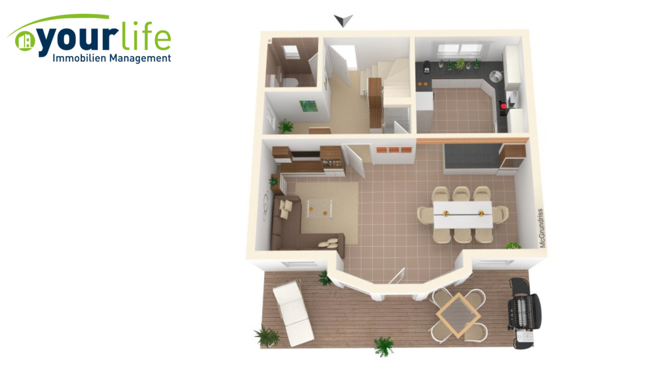 Als besondere architektonische Details sind ein Erker, ein Balkon und die darüber angeordnete Satteldachgaube enthalten. Große Fensterflächen sorgen für ein eindrucksvolles Erscheinungsbild und geben dem Innenleben helles Flair. Gößte Behaglichkeit bietet dieses Haus mit der Wohn/Ess/Landschaft mit direktem Zugang zu Terrasse und Garten ebenso wie mit drei Schlafzimmern und einem geräumigen Badezimmer im Obergeschoss. Eine schöne Eingangsdiele mit WC, unterstreichen das angenehme und praktische Wohngefühl in diesem Stadt-Land-Traumhaus.