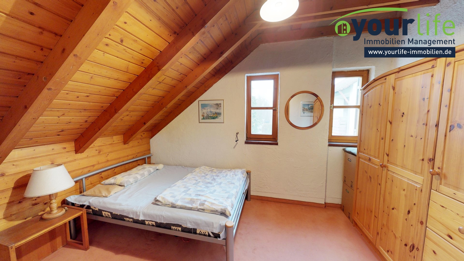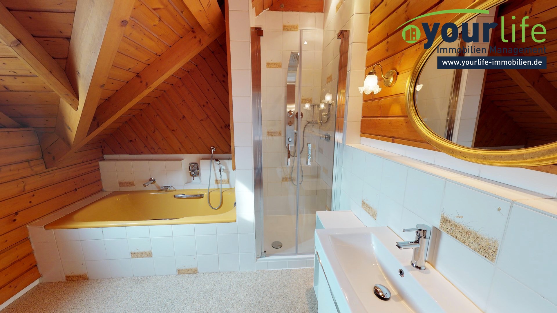 Im Dachgeschoss befinden sich alle Schlafräume, das große Badezimmer und zusätzlich ein separates WC mit Dusche.