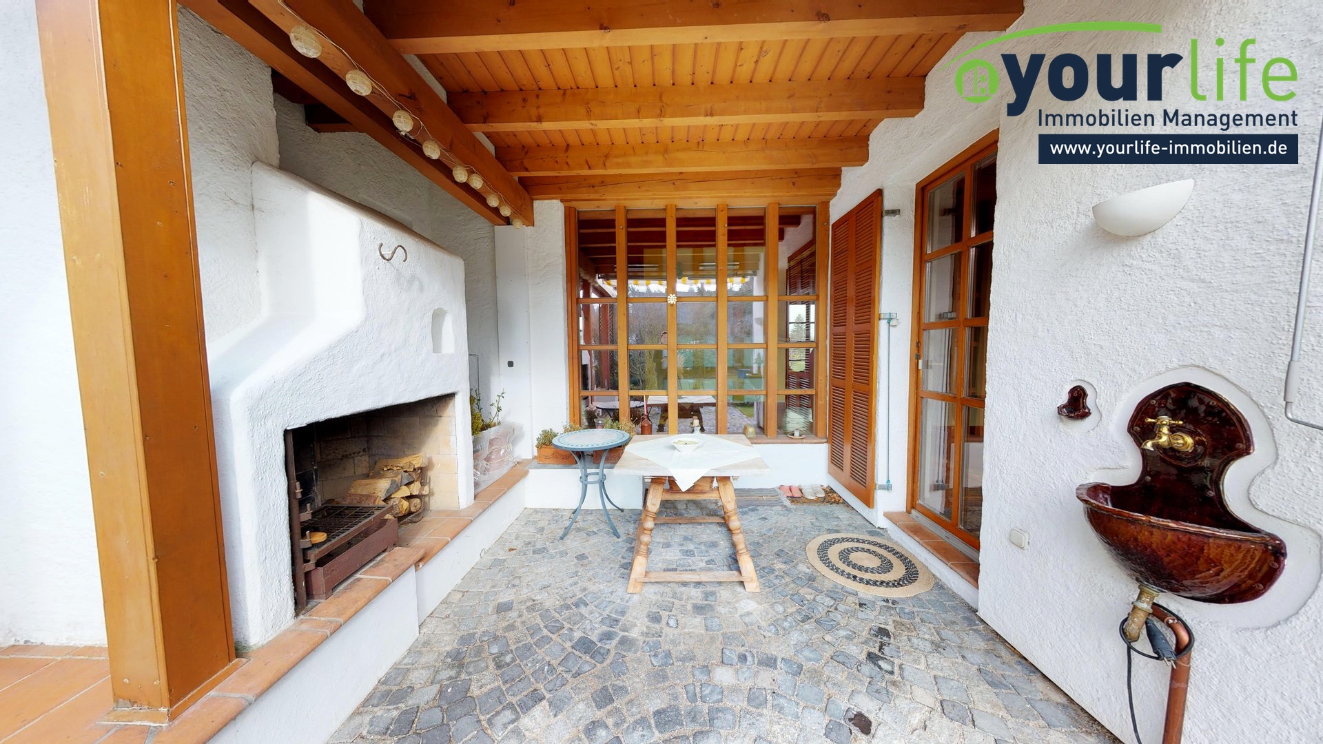 Aus dem Wohnbereich gelangt man auf die überdachte Südterrasse, diese bietet äußerst viel Platz zum grillen und entspannen.