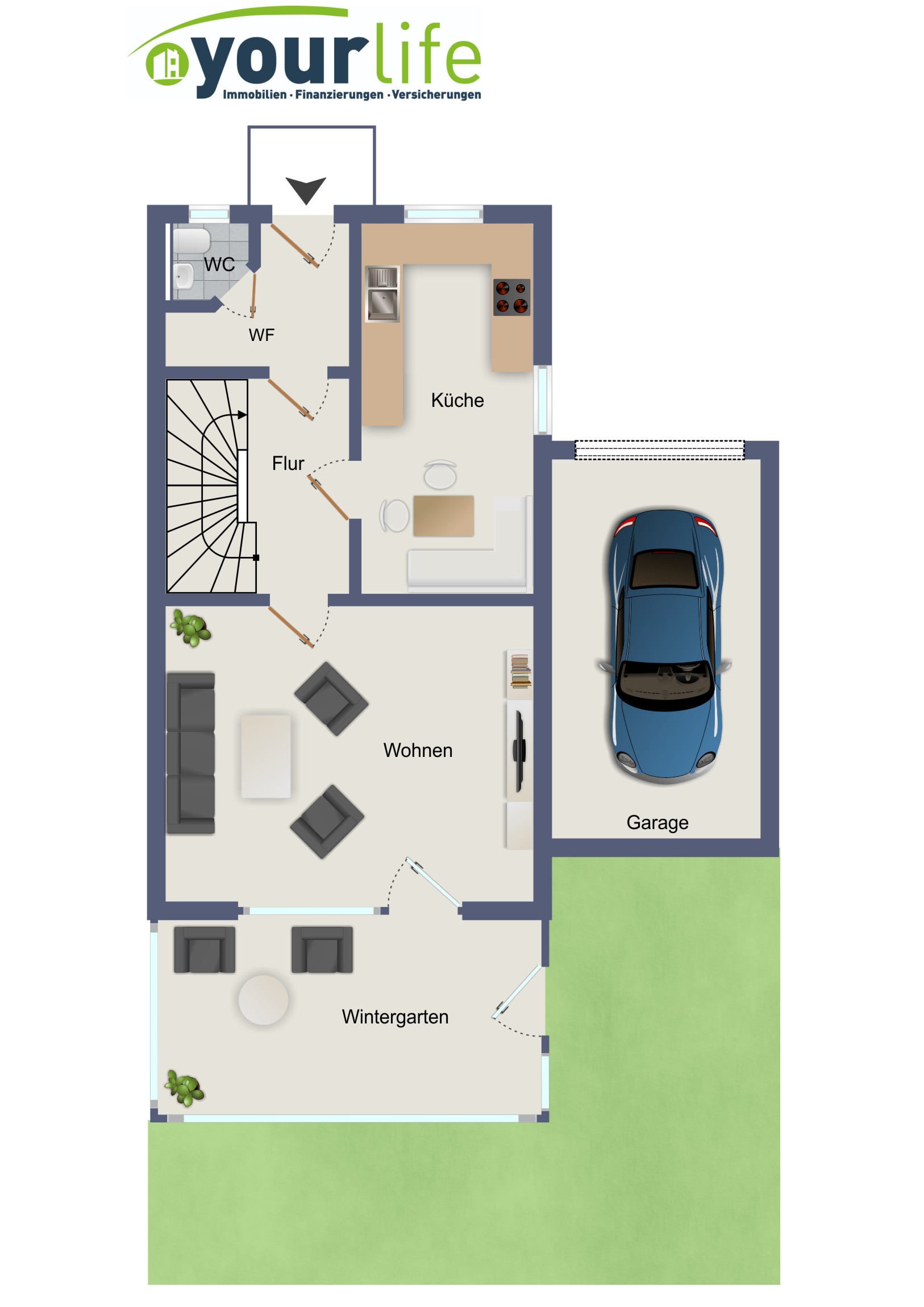 - Grundstücksfläche ca. 280 qm (Aufteilung nach WEG)