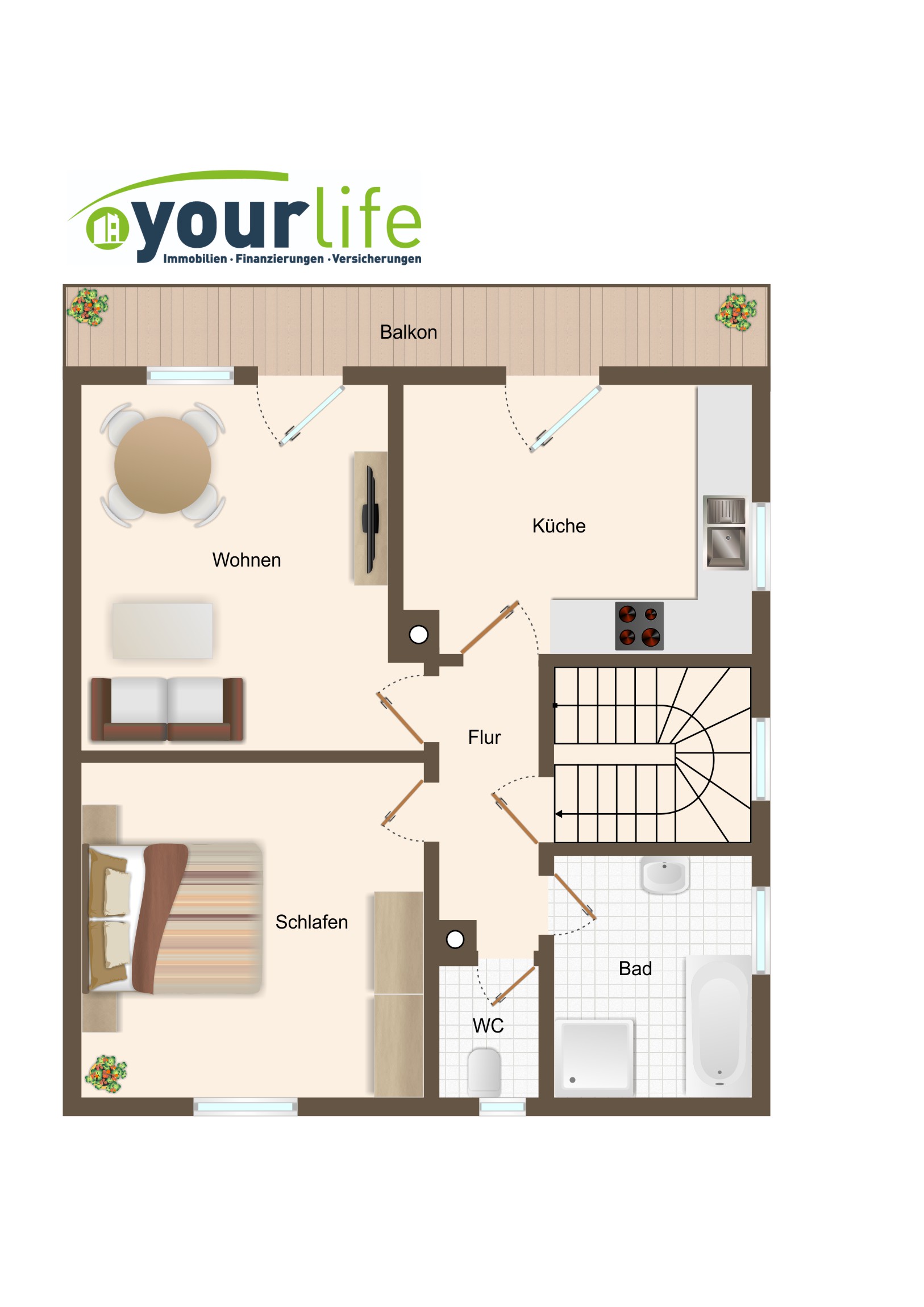 Die visualisierten Grundrisse stellen die ursprüngliche Aufteilung dar und können abweichen.