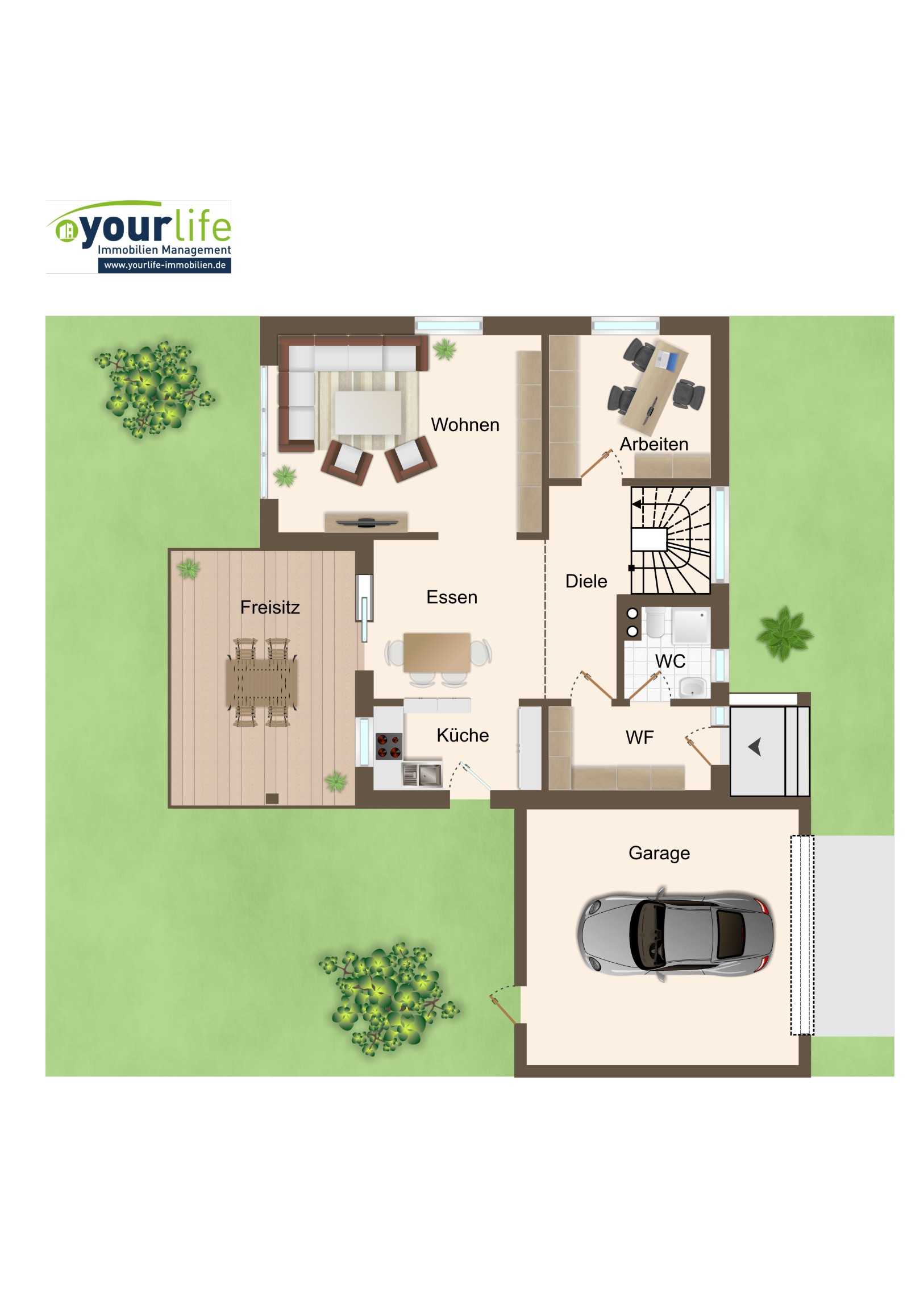 * Südterrasse und großer Garten