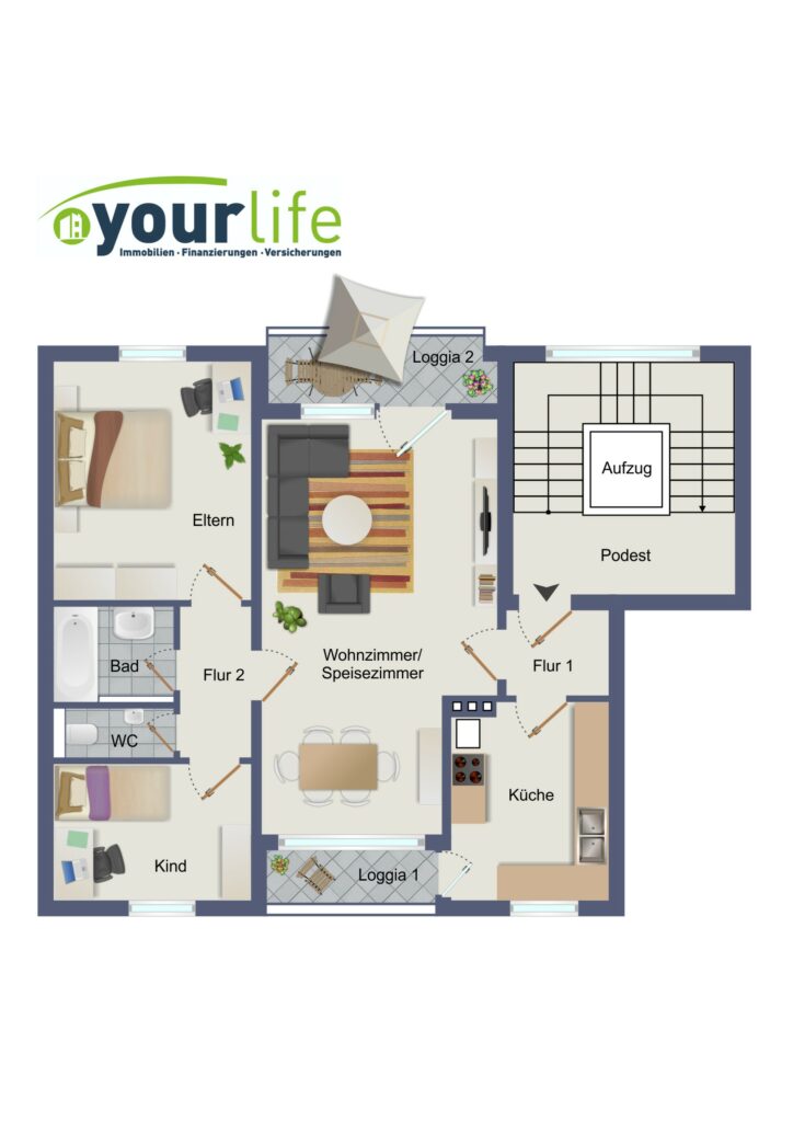 Die lichtdurchflutete 3-Zimmer-Wohnung befindet sich im südlichen Teil von Neugablonz. Sämtliche Einrichtungen des täglichen Bedarfs sind in unmittelbarer Nähe vorhanden. Die Wohnung liegt im 4. Obergeschoss eines Mehrfamilienhauses, welches über einen Personenaufzug verfügt.