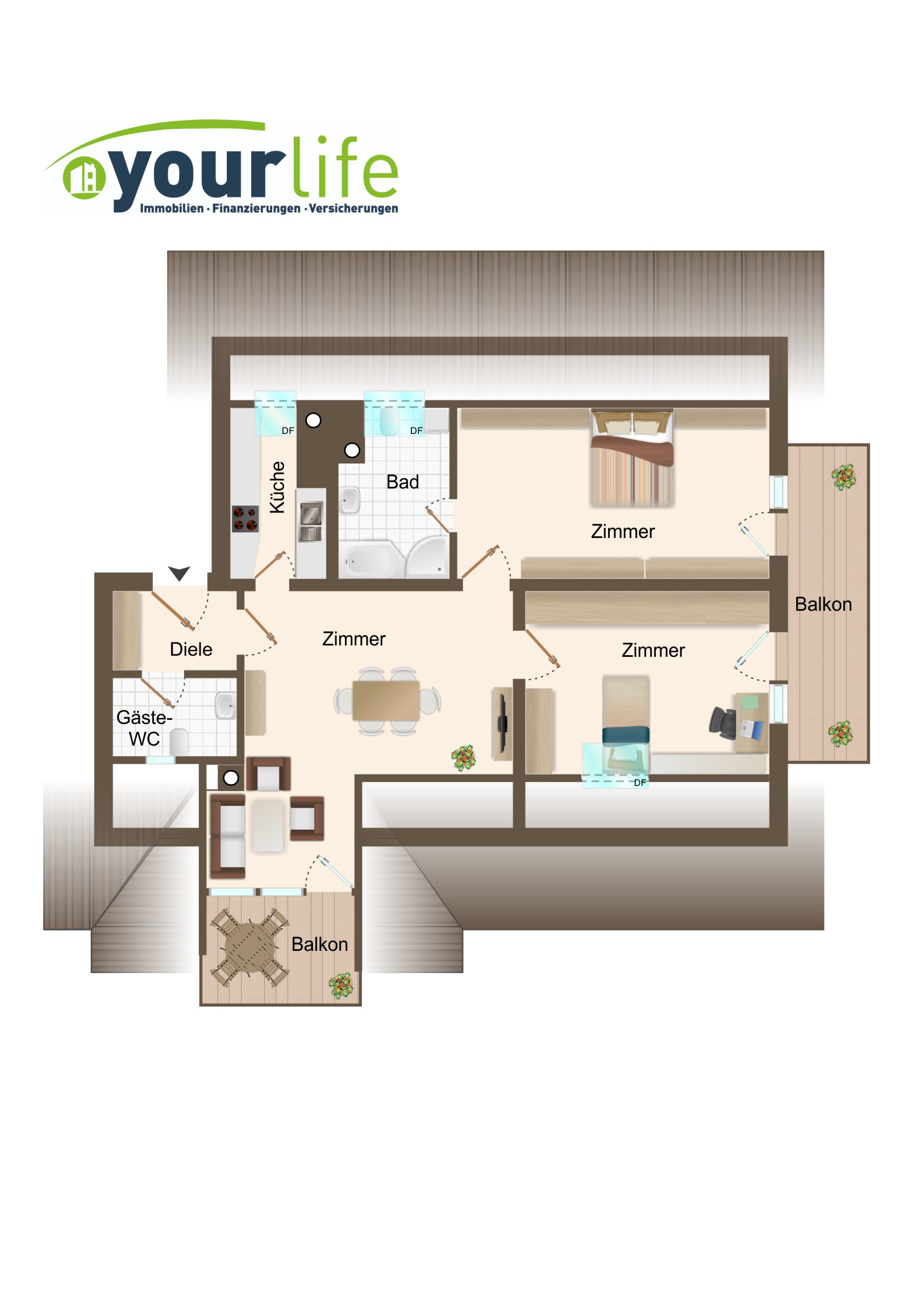 – Zwei Balkone (Süd und Ost)
