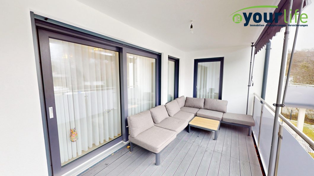 Großzügiger Balkon mit Hebeschiebetür
