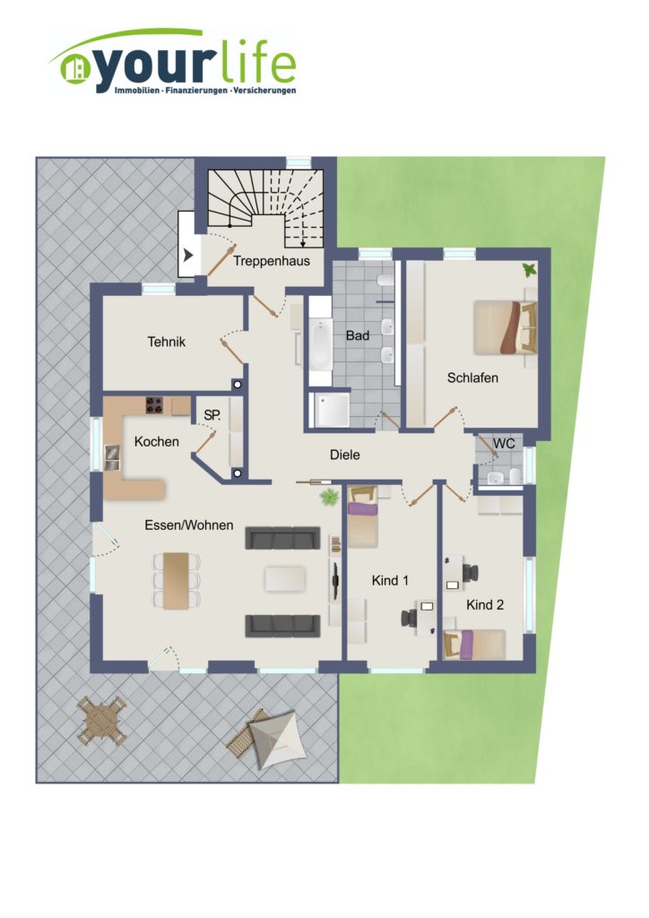 - Große Terrasse und Garten