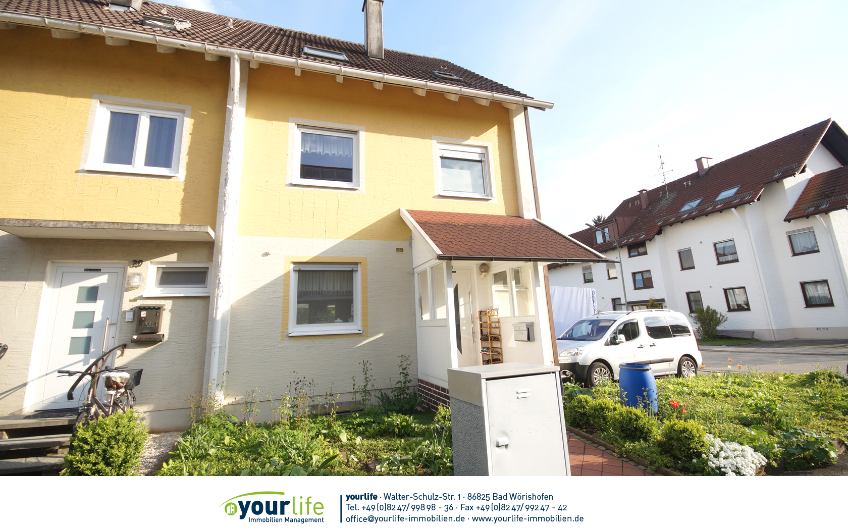 Verkauft wird ein gepflegtes Reiheneckhaus in einer ruhigen Lage von Bad Wörishofen. Das Reiheneckhaus eignet sich perfekt für eine größere Familie, da es über fünf Schlafzimmer verfügt. Im Erdgeschoss findet man den Wohn- und Essbereich und den Zugang zu der Überdachten Südterrasse. Im Wohnzimmer und in den Schlafräumen im ersten Obergeschoss, ist ein Parkettboden verlegt. Die weiteren zwei Schlafräume im Dachgeschoss haben einen Laminatboden. Die Küche, Bäder und Toiletten sind gefliest.