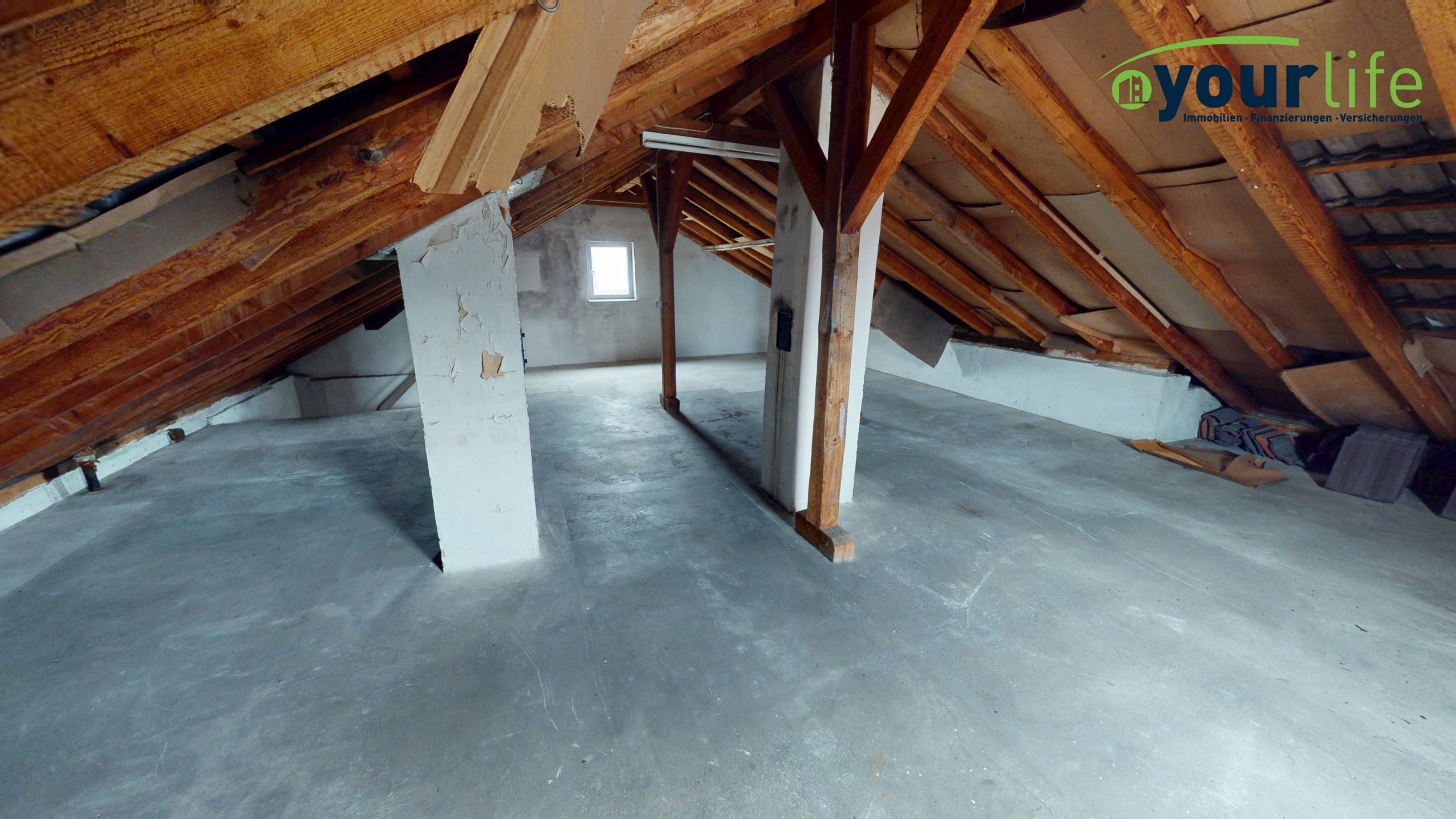 Das Gebäude ist voll unterkellert und befindet sich in einem sanierungsbedürftigen Zustand, bietet jedoch eine solide Basis für individuelle Modernisierungskonzepte.