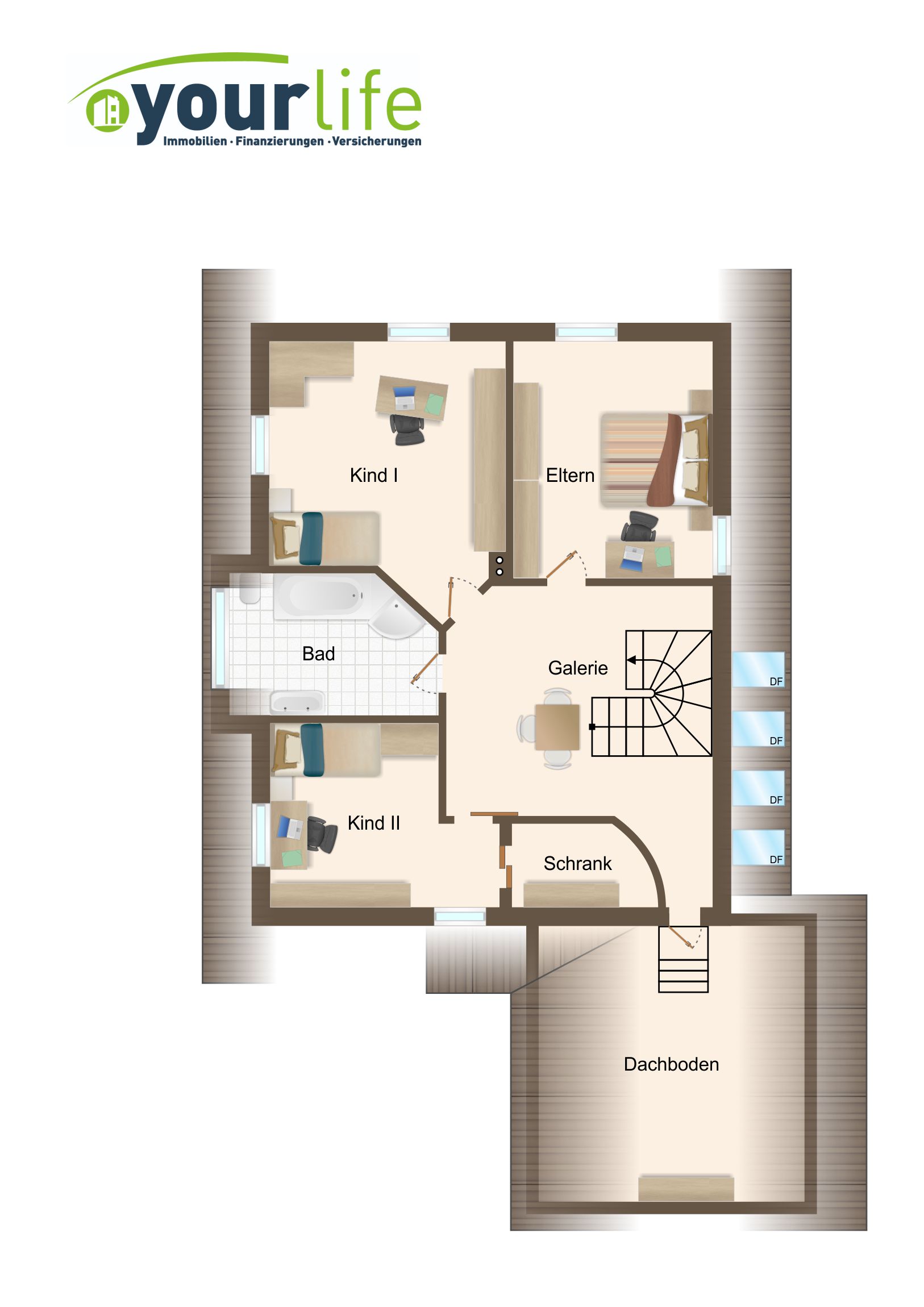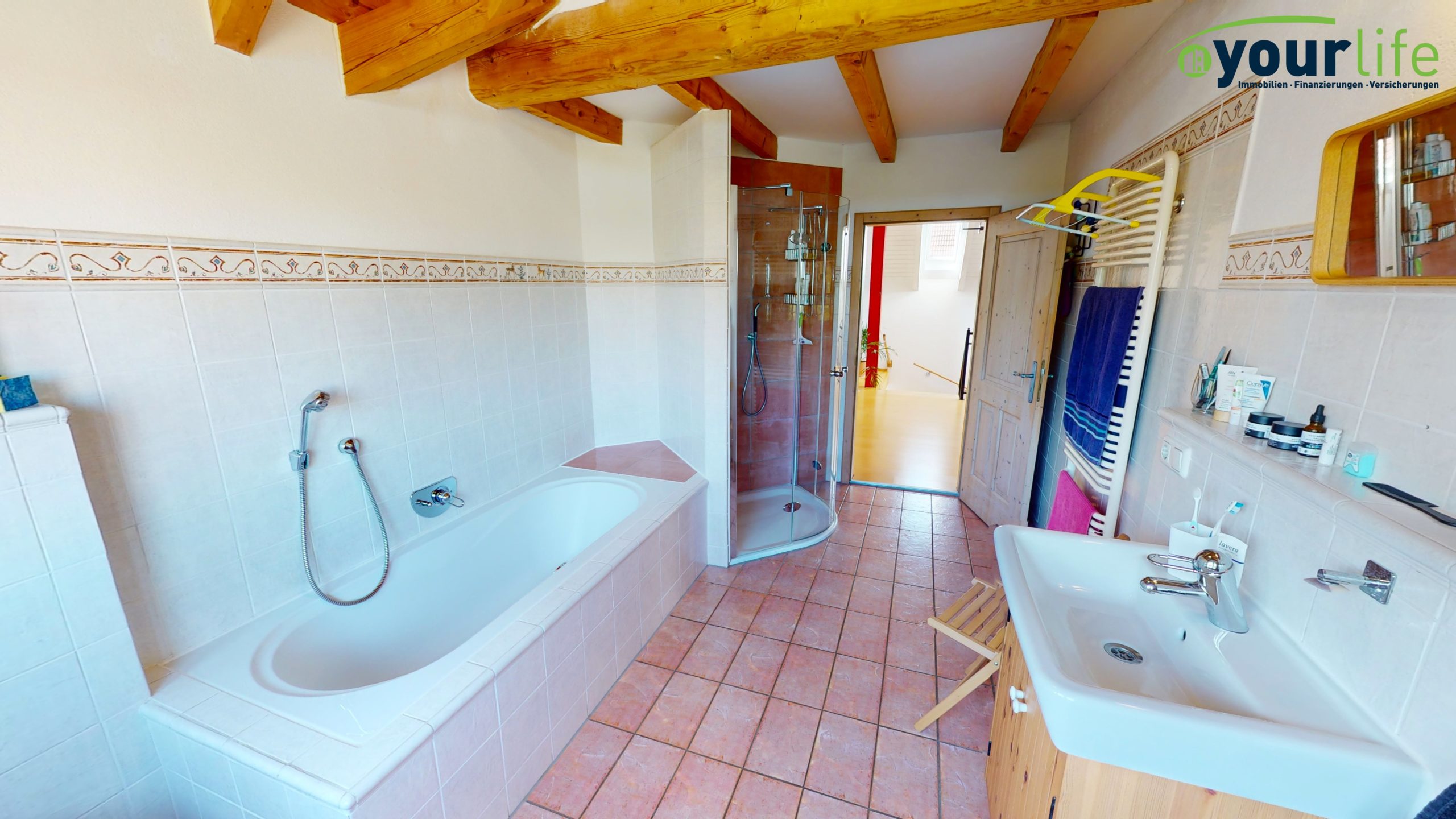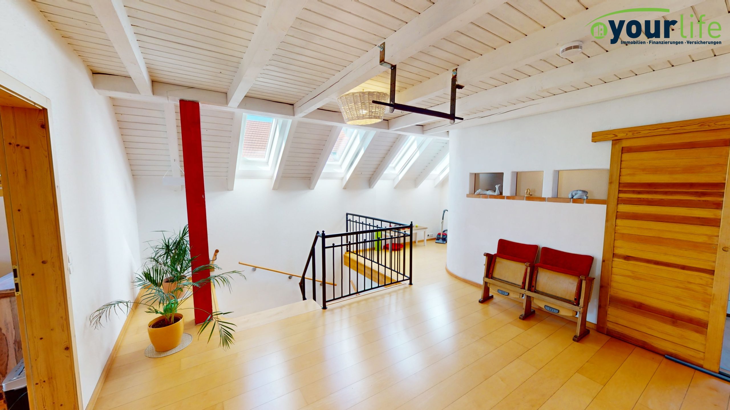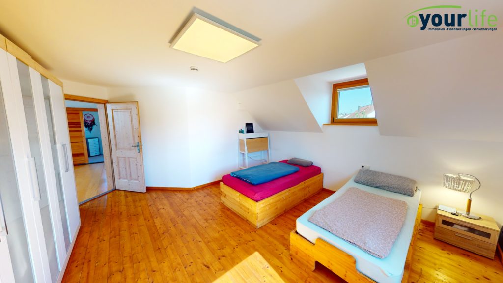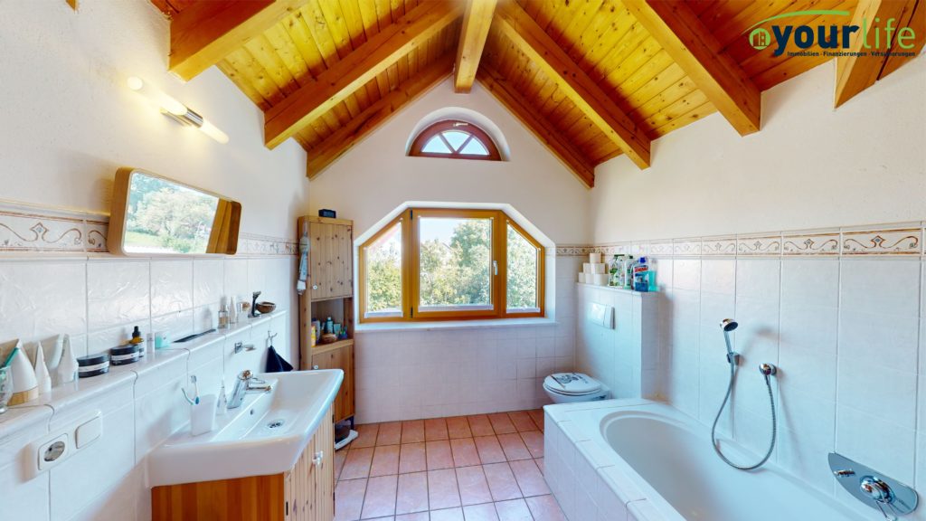 Im Dachgeschoss befinden sich die Schlafräume und ein großzügiges Badezimmer mit einer Badewanne und Dusche. Die Dusche wurde vor ca. zwei Jahre neu eingebaut. Alle Räume sind über die lichtdurchflutete Galerie begehbar.