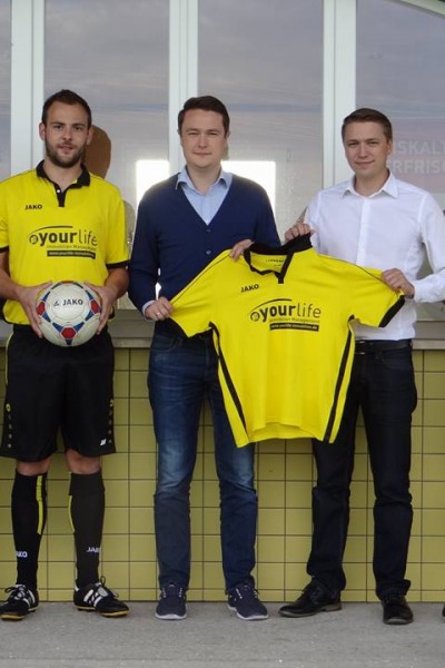 Mit einem Satz neuer Trikots stattete die Yourlife Immobilien Management GbR, mit Sitz in Bad Wörishofen, die Senioren-Fußballmannschaft des SV Schlingen aus.